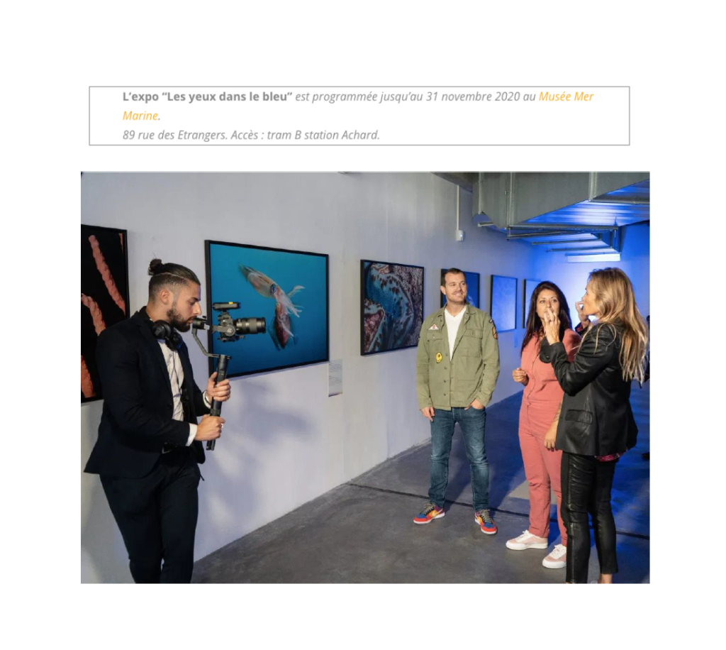 SOLCITO a fait un sujet sur l’exposition « Les Yeux dans le bleu » pensée par Rodolphe Guignard en partenariat avec l’association SPERO MARE fondée par Estelle Lefebure et Géraldine Parodi.