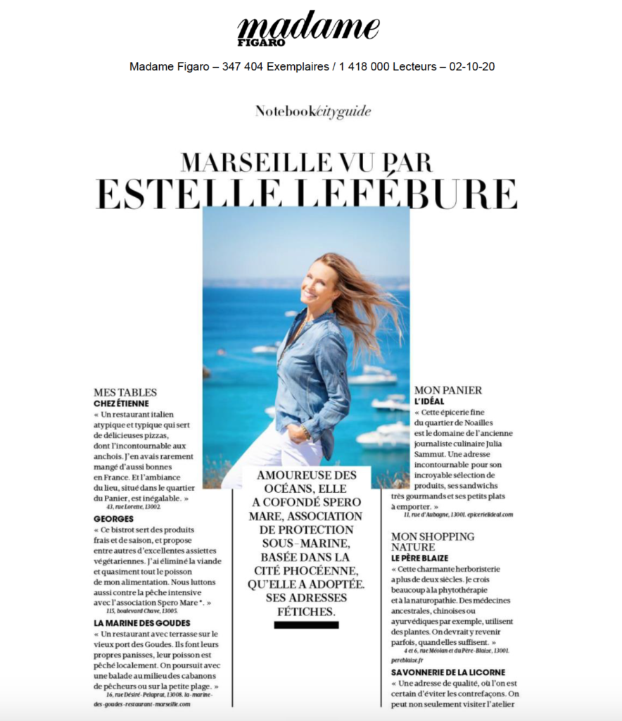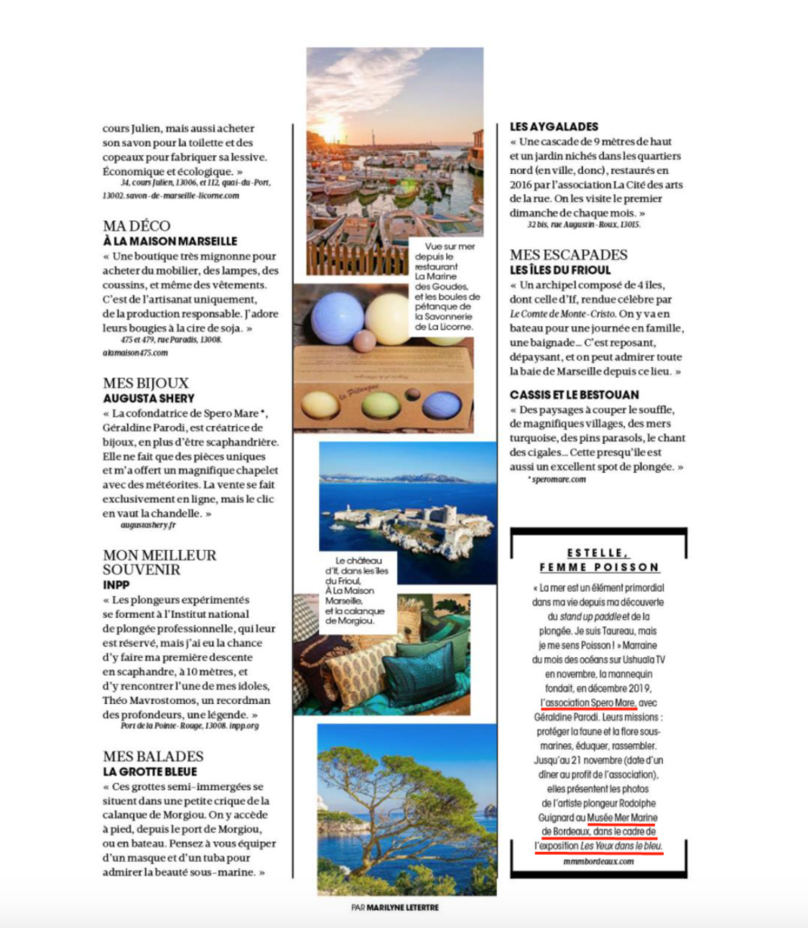 MADAME FIGARO a fait un sujet sur l’exposition « Les Yeux dans le bleu » pensée par Rodolphe Guignard en partenariat avec l’association SPERO MARE fondée par Estelle Lefebure et Géraldine Parodi.